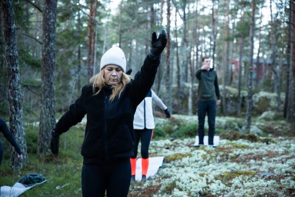 ”Att yoga utomhus, mitt bland skogens dofter och ljud, gör verkligen att upplevelsen blir något alldeles extra.”